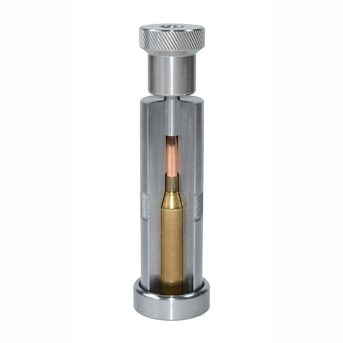 815145027153 Der Wilson Chamber Type Bullet Seater ist bei Benchrest-Schützen sehr beliebt. Ein Chamber Type Bullet Seater sorgt für eine präzise Ausrichtung von Projektile und Patronenlager. Die Patrone und das Projektil werden vollständig von der Matrize erfasst, bevor das Projektil von einem passgenauen Sitzstift gerade in die Patrone gedrückt wird. Diese Art von Bullet Seater arbeitet genauer als eine herkömmliche 7/8 Zoll bis 14 Bullet Seating Die. Dies ist einer der genauesten Bullet Seater, die je hergestellt wurden!