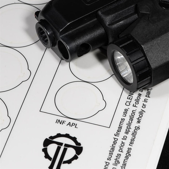 CLENS LENS PROTECTION FOR FLASHLIGHTS AND WEAPON LIGHTS Lights only work well when their lenses are clean. Each CLENS Protector provides an easy way to protect lenses during extended shooting sessions. Just like goggle tear-offs for off-road riding, just remove the dirty CLENS to return your light to its optimal brightness. CLENS (pronounced “cleanse”) come as a set of heat-resistant clear polymer circles, cut to fit on a wide range of flashlight and weapon-light lenses. Each CLENS Protector protects the lens from carbon and other debris that can build up during firearms training. Each CLENS Protector has a small tear-away tab. The CLENS Protector can be removed to quickly clean a light, rather than having to apply Vaseline before shooting, replace a lens, or risk abrasion with lens cleaners. Each CLENS’ mild adhesive backing has a higher affinity for polymer than glass. Attach and position easily, without leaving adhesive on clean glass. However, the adhesive may stick to a dirty or damaged lens. In this case, touching the sticky side of the CLENS to any residual adhesive should remove the adhesive from the lens. Designed and manufactured in the USA. * Follow all firearm safety rules at all times. Detach lights from firearms prior to installing, removing, cleaning, or replacing the CLENS.