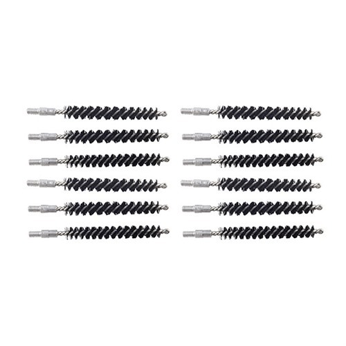 Die Reinigungsbürsten haben maschinell gefertigte Aluminiumkomponenten, die nicht mit ammoniakhaltigen Lösungsmitteln reagieren, wie es bei Messingteilen manchmal der Fall ist. Sie erzeugen keine blau-grünen Flecken auf deinen Patches, die fälschlicherweise als "falsche positive" Anzeichen von Kupferablagerungen gedeutet werden können, sodass du genau weisst, wann dein Lauf wirklich kupferfrei ist. Ähnlich hart wie Messing, zerkratzen die Copper Eliminator Teile den Lauf nicht und beschädigen auch nicht die Mündung. Sie sind für den harten Einsatz ausgelegt. Nylonborsten, die um einen Aluminiumkern gewickelt sind, sowie ein männlich gewindeter Aluminiumanschluss sind vollständig frei von Messing, um falsche positive blau-grüne Anzeichen von Kupferablagerungen zu eliminieren, die bei der Verwendung von ammoniakhaltigen Lösungsmitteln mit Messingkernbürsten auftreten können. Dichte Nylonborsten bieten viel Schrubkraft, sind jedoch äusserst sanft zum Zügen. Bürsten für .17 und .20 Kaliber mit 5-40 Gewinde erweitern die Vorteile des Copper Eliminator Systems auf deinen vorhandenen Kleinkaliber-Rohr. Die Bürsten für .22 Kaliber und grösser haben 8-32 Gewinde zur Verwendung mit Dewey Copper Eliminator-Rohren.Nachbestellt, Lieferzeit ca. 4-12 Wochen aus dem Lager USA.