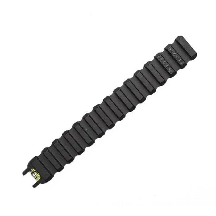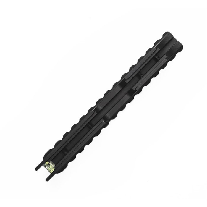 • Bubble Level: Der eingebaute Level kann leicht am Ende der Rail gesehen werden, ohne dass du deinen Kopf vom Schaft nehmen musst.