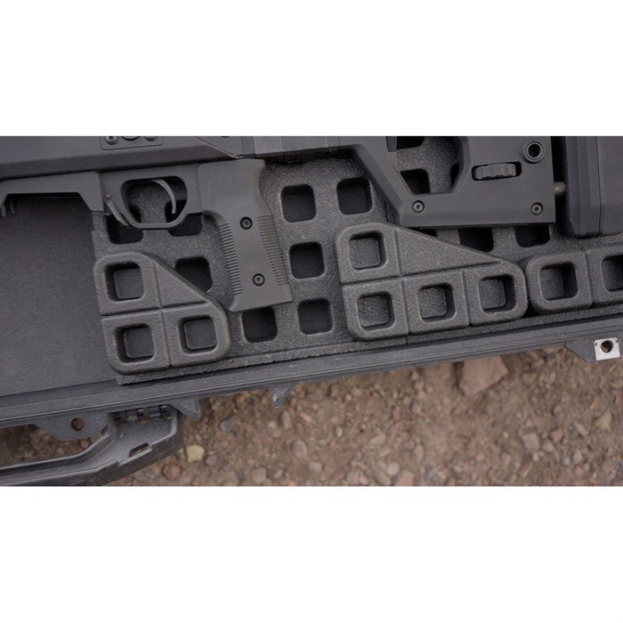 • Design: Beide Blöcke verfügen über einen V-förmigen Kanal in der Mitte, der bessere Stabilität und eine individuelle Passform für Läufe und andere Ausrüstungsgegenstände bietet, die nicht flach am Boden des Gehäuses liegen.