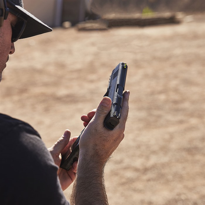- Blocco del carrello ambidestro e pulsante di rilascio del caricatore reversibile per un'ergonomia superiore