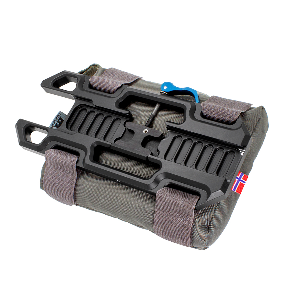 Grazie ai dispositivi di fissaggio integrati nella piastra, il supporto per cuscino verrà fissato alla piastra con cinghie. E grazie al cuscino di supporto modellabile, ora puoi posizionare il tuo fucile su qualsiasi tipo di superficie, che sia appuntita, angolosa o persino con fori.