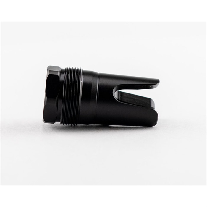 FHD FLASH HIDERS These fit the plan B type mounts. This is an updated version that has larger wrench flats on the rear. Always use an alignment rod to ensure that the entire system is set up correctly. Make sure all surfaces are cleaned and the muzzle device has been torqued and Rockset to the barrel. Use on a Q can voids your warranty, be warned. Torque the muzzle device to approximately 30 ft lbs. Make sure the muzzle device is square against the shoulder. When setting the silencer on the muzzle device, ensure that the threads and tapers are clean. Torque the suppressor to 10 ft lbs. Ensure alignment. Enjoy. The nitride finish does lead to a tighter seal, with that said, it is extremely important to torque and rockset your muzzle device to the barrel properly. FEATURES: 17-4 PH H900 Atlas and Atlas XL Compatible Plan B Compatible Atlas XL Adapter No Overrun Black Nitride Finish (67 HRC Surface Hardness) Shims Not Included, if you would like to specifically time this, shims will be required. Note: your barrel may require a shim if the manufacturer did not put a thread relief on it.