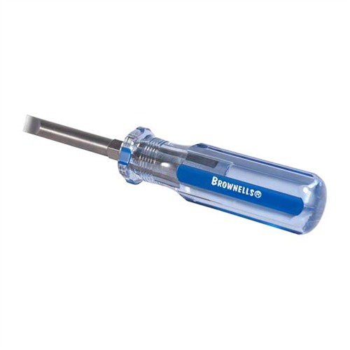 BROWNELL’S FIXED BLADE GUNSMITH'S SCREWDRIVERS The Brownells Fixed-Blade Gunsmith's Screwdrivers are meticulously designed for gunsmiths and firearm enthusiasts who demand precision and reliability in their tools. Each screwdriver features a custom, precision-ground, hollow-ground blade tip that ensures a perfect fit in gun screws, distributing torque evenly to prevent damage. The short blade length of 2½ inches provides maximum control and minimizes wobble during use. The long parallel shank maintains the same diameter as the blade width, allowing for repeated regrinding and access to recessed screws. Handles are custom-made to fit comfortably in the hand, offering a secure grip for both large, tight screws and delicate, small screws. Key Features: Precision-Ground Blade Tips: Custom, hollow-ground tips provide maximum strength and a perfect fit in screw slots, preventing damage. Short Blade Length: 2½-inch blades offer enhanced control and reduce wobble during use. Parallel Shank Design: Maintains blade width for easy regrinding and access to recessed screws. Comfortable Handles: Custom-designed handles fit well in the hand, providing a secure grip for various screw sizes. Specifications: Blade Length: 2½ inches Handle Length: 3¾ inches Handle Diameter: 1 inch Material: Hardened steel shank with custom handle Customer Insights: Our customers highly value the Brownells Fixed-Blade Gunsmith's Screwdrivers for their exceptional precision and durability. The custom, precision-ground blade tips are particularly appreciated for their perfect fit in gun screws, effectively preventing damage during adjustments. The short blade length enhances control, making delicate tasks more manageable. Additionally, the comfortable handle design provides a secure grip, accommodating both large and small screws with ease. Overall, these screwdrivers are considered indispensable tools for both professional gunsmiths and firearm enthusiasts. Incorporating the Brownells Fixed-Blade Gunsmith's Screwdrivers into your toolkit ensures precise and reliable performance for all your firearm maintenance and customization needs. Their specialized design and high-quality construction make them essential tools for achieving professional results.