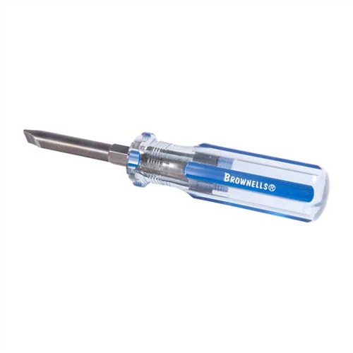 BROWNELL’S FIXED BLADE GUNSMITH'S SCREWDRIVERS The Brownells Fixed-Blade Gunsmith's Screwdrivers are meticulously designed for gunsmiths and firearm enthusiasts who demand precision and reliability in their tools. Each screwdriver features a custom, precision-ground, hollow-ground blade tip that ensures a perfect fit in gun screws, distributing torque evenly to prevent damage. The short blade length of 2½ inches provides maximum control and minimizes wobble during use. The long parallel shank maintains the same diameter as the blade width, allowing for repeated regrinding and access to recessed screws. Handles are custom-made to fit comfortably in the hand, offering a secure grip for both large, tight screws and delicate, small screws. Key Features: Precision-Ground Blade Tips: Custom, hollow-ground tips provide maximum strength and a perfect fit in screw slots, preventing damage. Short Blade Length: 2½-inch blades offer enhanced control and reduce wobble during use. Parallel Shank Design: Maintains blade width for easy regrinding and access to recessed screws. Comfortable Handles: Custom-designed handles fit well in the hand, providing a secure grip for various screw sizes. Specifications: Blade Length: 2½ inches Handle Length: 3¾ inches Handle Diameter: 1 inch Material: Hardened steel shank with custom handle Customer Insights: Our customers highly value the Brownells Fixed-Blade Gunsmith's Screwdrivers for their exceptional precision and durability. The custom, precision-ground blade tips are particularly appreciated for their perfect fit in gun screws, effectively preventing damage during adjustments. The short blade length enhances control, making delicate tasks more manageable. Additionally, the comfortable handle design provides a secure grip, accommodating both large and small screws with ease. Overall, these screwdrivers are considered indispensable tools for both professional gunsmiths and firearm enthusiasts. Incorporating the Brownells Fixed-Blade Gunsmith's Screwdrivers into your toolkit ensures precise and reliable performance for all your firearm maintenance and customization needs. Their specialized design and high-quality construction make them essential tools for achieving professional results.