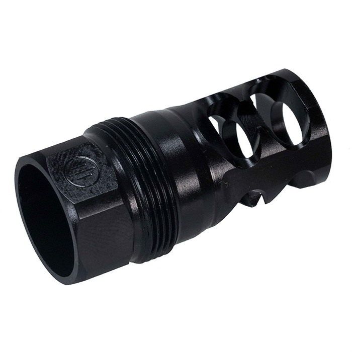 Elevate your shooting experience with the cutting-edge PWS FRC square compensator, designed to be a suppressor host for the Rearden Atlas suppressor mounting system, accommodating popular suppressors like the BDE 762. Crafted with precision and innovation, this compensator stands as a premier selection for a diverse range of shooting scenarios. The PWS FRC compensator sets itself apart by prioritizing recoil reduction as its primary function while simultaneously excelling at flash suppression. Its distinctive 2-port design skillfully redirects flash away from optics and the line of sight, ensuring an unobstructed view and minimizing overpressure. When paired with suppressors, the FRC boasts a tight lockup and maintains it through hard shooting cycles. Mounted precisely, the FRC becomes a crucial component in your rifle's comprehensive recoil management system. By effectively mitigating recoil and muzzle rise, this compensator enables swift follow-up shots, ultimately delivering improved shooter control and accuracy. Choosing the PWS FRC provides the best of both worlds—superior recoil management and effective flash suppression—making it an indispensable asset for any shooter looking to enhance their shooting prowess and overall experience on the range or in the field. Select between flat shouldered option, for traditional rifle barrels, or tapered shoulder, for barrels with a tapered shoulder behind the muzzle threads.