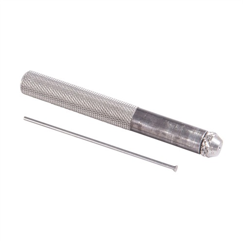 GUNSMITH REPLACEABLE PIN PUNCH SET The Brownells Gunsmith Replaceable Pin Punch Set is a versatile and durable tool designed to enhance efficiency in firearm assembly and maintenance. This innovative set features a robust handle paired with replaceable punch tips, allowing for quick replacements and minimizing downtime during gunsmithing tasks. Description and Features: High-Strength Handle: Crafted from fatigue-proof cold rolled steel (C.R.S.) with a tensile strength exceeding 140,000 psi, the handle ensures durability and longevity. Replaceable Punch Tips: The set includes tool steel, bevel-headed punches that are oil-hardened to a Rockwell hardness of Rc 58-60, with annealed heads at Rc 42-45. These replaceable tips can be ground to exact lengths as needed, offering customization for specific tasks. Secure Grip: A removable knurled chuck securely holds the punch tips in place during use, providing stability and precision. Available Sizes: The replaceable punch tips are available in various diameters to accommodate different pin sizes commonly encountered in firearms: 0.039" 0.060" 0.091" Each size is offered in lengths of 2 inches and 2.5 inches, providing flexibility for various applications. Specifications: Handle Material: Cold rolled steel (C.R.S.) Punch Material: Tool steel Hardness: Punch tips hardened to Rc 58-60; heads annealed to Rc 42-45 Available Punch Diameters: 0.039", 0.060", 0.091" Available Punch Lengths: 2 inches, 2.5 inches Customer Insights: Our customers report that the Brownells Gunsmith Replaceable Pin Punch Set is an invaluable addition to their toolkit. The ability to quickly replace punch tips reduces downtime, and the customizable lengths allow for precise application in various gunsmithing tasks. The high-strength handle provides a comfortable and secure grip, enhancing overall efficiency and accuracy. Incorporating the Brownells Gunsmith Replaceable Pin Punch Set into your gunsmithing toolkit ensures you have a reliable and adaptable solution for pin removal and installation, streamlining your firearm maintenance and assembly processes.