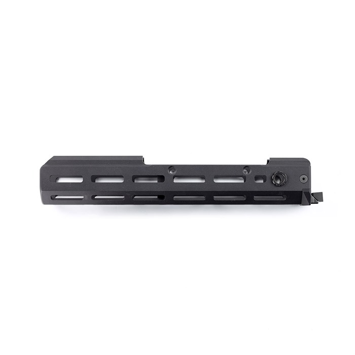 - Utilise le handguard pour monter des accessoires compatibles via les points MLOK.