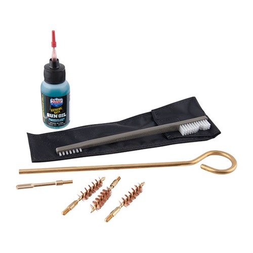 050806007659 Il nostro kit di pulizia compatto maneggevole contengano tutti gli elementi che è necessario pulire una pistola o revolver, ovunque, in qualsiasi momento. Costa circa come un generico "big box" conservare il kit, ma equipaggiata con componenti di alta qualità. I 6" asta di pulizia è fatto di ottone per proteggere i delicati rigatura da danni durante il trascinamento di polvere, piombo e rame incrostazioni dal foro. C'è un ciclo di patch di ottone del tpi 8-32, 3 Brownells "Linea speciale" ottone Core foro spazzole, 25 di nostro 1¾" quadrato 100% cotone flanella pulizia patch, nostra pistola/particolari sempre utile nylon spazzola di pulizia e 1 oncia di Lucas Extreme Duty pistola olio per lubrificazione superiore e protezione delle superfici metalliche. Custodia di trasporto in nylon mantiene tutti questi componenti insieme - pronto quando ne bisogno.Tempi di consegna circa 8-15 giorni dal magazzino negli Stati Uniti.