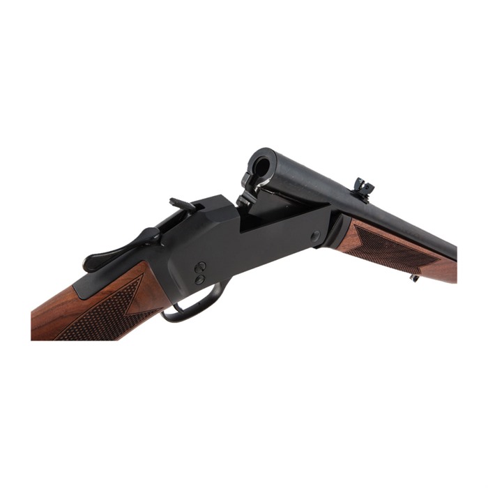 Designed to provide hunters and shooters with a confidence-inducing, safety-oriented single-shot rifle with the quality and provenance from a known and trusted manufacturer, the Henry Repeating Arms Singleshot rifle is purpose-built for range or field use. The Henry Repeating Arms Singleshot rifle is equipped with a round barrel topped by the company's classic buckhorn and brass-bead sights. Additionally, the rifle is drilled and tapped at the factory for optics attachments. For added safety, the gun uses a rebounding hammer that requires a deliberate trigger pull to actuate, and the built-in interlock system doesn't allow the barrel to open or close while the hammer is cocked. Barrel length: 22 inches Chambered in .45-70 Blued metal with wood furniture Weight: 6.83 pounds Each Henry Repeating Arms Singleshot rifle is equipped with an attractive walnut stock paired with a rubber recoil pad for added shooting comfort.