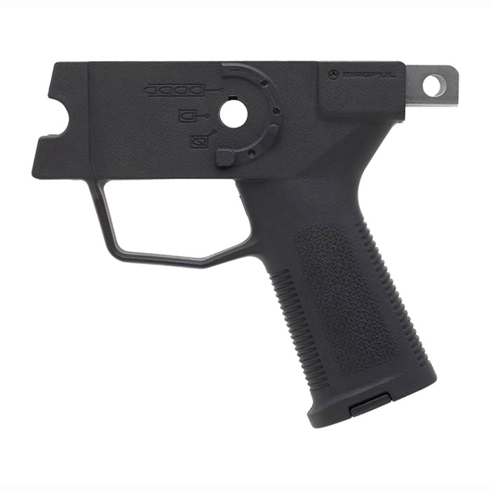 The Magpul® SL Grip Module is a high-strength, injection-molded polymer grip module for HK94/93®/91® & Semi Shelf HK® Clones. Designed with improved ergonomics, a non-slip texture, and a modern aesthetic, the SL Grip Module brings numerous enhancements without sacrificing the iconic silhouette of the firearm. Containing innovations found in our other grips, the SL Grip Module provides increased firearm control with a TSP texture and easier to access fire control components through an optimized grip angle. HK “Navy-style” pictograph markings give a clear indication of the selector position while the MIAD®/MOE® Storage Core compatibility keeps necessary small items at hand. The combination of our high-strength polymer and corrosion-resistant steel components provide proven Magpul reliability. Optimized grip angle and TSP texture for positive weapon control in all environments HK “Navy-style” style pictograph selector markings (Safe/Semi/Full-Auto) Enhanced ergonomics allow easier access to fire control components. Accepts MIAD/MOE Storage Cores High-strength polymer and corrosion-resistant steel construction This product can serve as one 922(r) compliant component for imported MP5 clones. Drop-in installation COMPATIBILITY HK94, 93, 91, and HK clones with a semi shelf receiver interface Fits reverse stretch MP5K/clones Will fit Zenith Firearms MP5 clones with the exception of the K models Accommodates three-position S-E-F and Safe-Semi trigger packs Compatible with Magpul ESK and S-E-F/Safe-Semi SSL for polymer trigger housing units Not compatible with S-E-F/Safe-semi SSL for metal trigger housing units The SL Grip Module is not compatible with “swing-down” receivers Does not fit “K-length” receivers BLACK