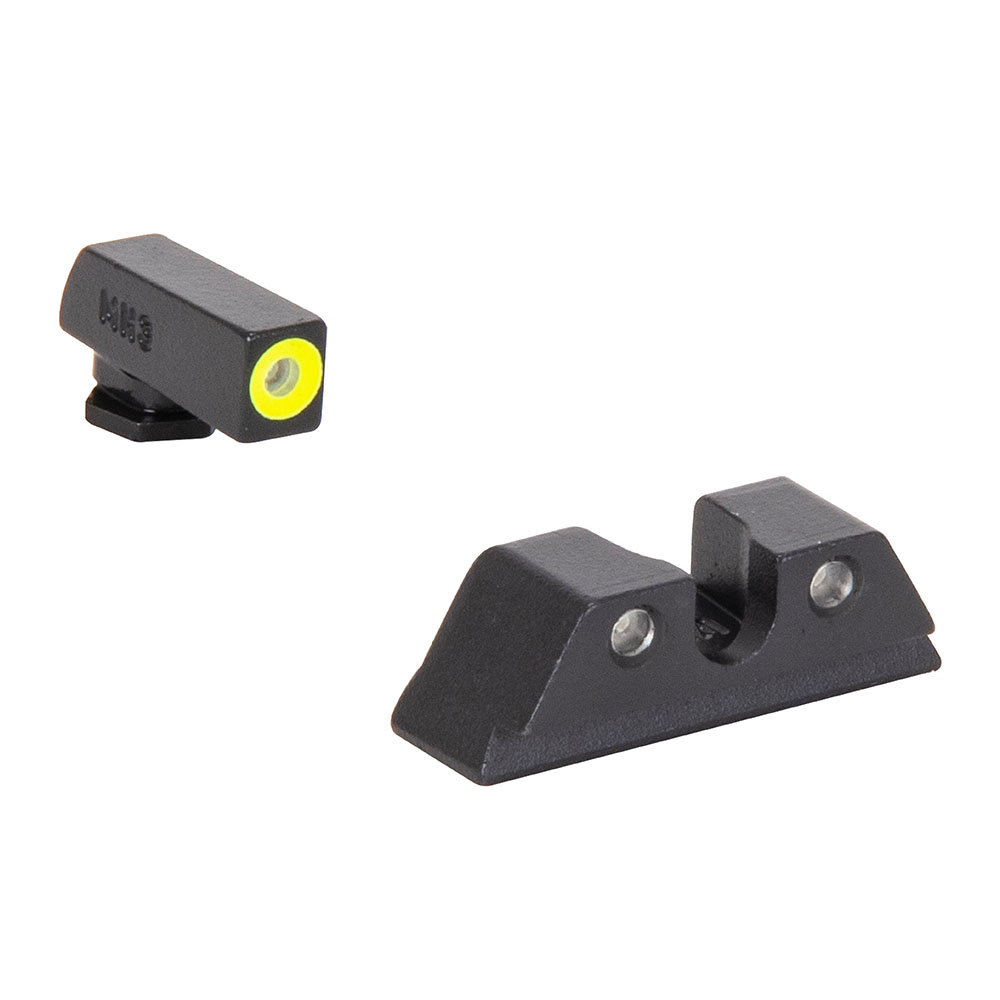Questi mirini fissi auto-illuminati sono dotati di un anello frontale colorato estremamente luminoso, disponibile in verde, giallo o arancione, che garantisce una visibilità suprema sia come mirino notturno che come mirino giorno-notte. I colori contrastanti tra il mirino anteriore e posteriore aiutano i tiratori a concentrarsi più rapidamente sul mirino anteriore per un'acquisizione del bersaglio più veloce in tutte le condizioni di illuminazione.