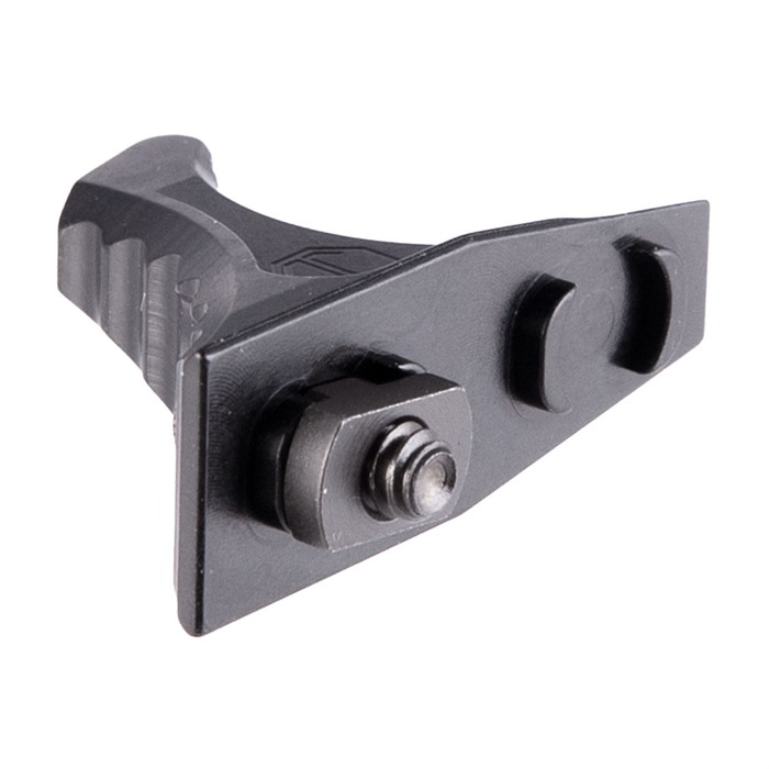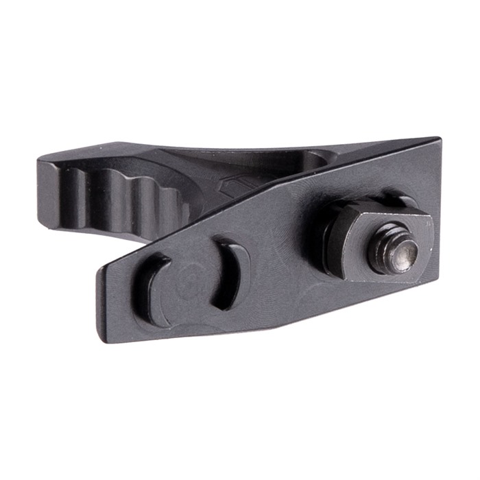 Dispositif de rétention de main Compact, léger et réversible Compatible M-Lok S'adapte dans et à travers les fentes M-Lok Comprend le matériel de montage Aluminium 7075 T6 anodisé dur Les écrous T-slot à quart de tour ont des spécifications de couple différentes selon le matériau du garde-main : 4,0 N⋅m (35 lb⋅in) pour attacher des accessoires métalliques à des garde-mains métalliques. 1,7 N⋅m (15 lb⋅in) pour attacher des accessoires en polymère ou en métal à des garde-mains en polymère.