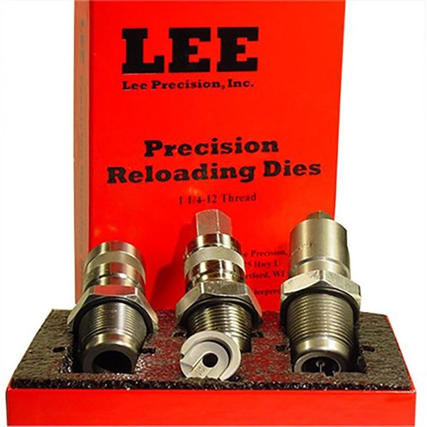 734307909291 Das Lee Large Series 3-Diensatz enthält eine Full Length Sizing Die, eine Bullet Seating Die, eine Factory Crimp Die, einen Hülsenhalter, einen Pulverlöffel und eine Anleitung. 1-1 ¼ X12 Gewinde.Nachbestellt, Lieferzeit ca. 4-12 Wochen aus dem Lager USA.
