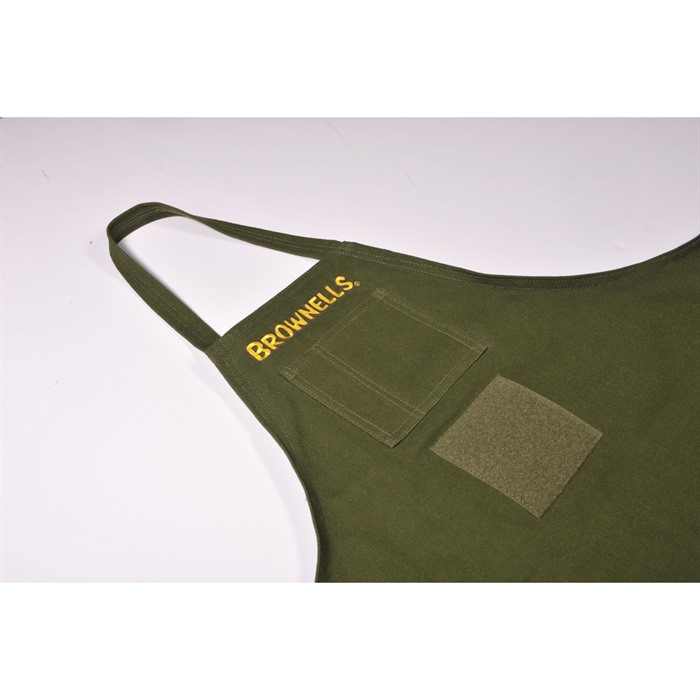 La fermeture auto-agrippante sur la sangle de cou te permet d'ajuster le bavoir pour un maintien sécurisé et une couverture maximale. Le logo Brownells est élégamment brodé sur le devant pour faire savoir à tout le monde qui est ton fournisseur d'armes à feu préféré.