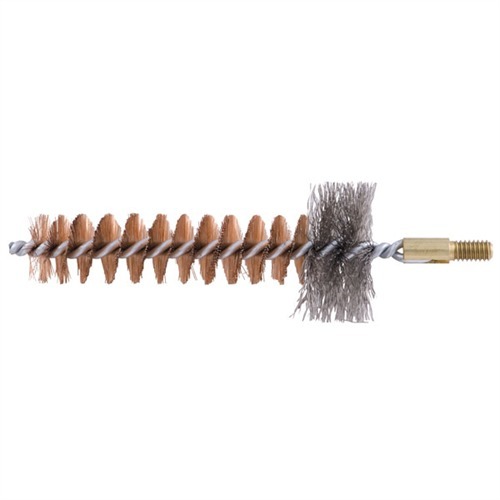 Le setole in bronzo si adattano perfettamente alla camera, mentre i ciuffi in acciaio inossidabile più lunghi puliscono i recessi dei perni di bloccaggio.