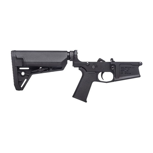 The M5 Complete Lower Receiver is the perfect base for your custom big-bore AR build. This complete lower features Aero's custom designed M5 Lower Receiver and is upgraded to include a MOE SL® Grip and MOE® SL-S™ Carbine Stock. Includes: M5 Stripped Lower Receiver MOE SL® Grip MOE® SL-S™ Carbine Stock Lower Parts Kit Carbine Receiver Extension M5 Carbine Buffer and Spring These parts are installed Aero's M5 Lower Receiver sets the standard for big-bore AR builds. This custom designed enhanced forging is machined from 7075-T6 Aluminum and works with standard AR308 components and magazines. It has been engineered with upgraded features, including a threaded bolt catch roll pin, integrated trigger guard, upper tension screw, threaded takedown pin detent recess and increased magwell flare. It uses custom takedown and pivot pins as well as an extended magazine catch button which are included in this assembly.