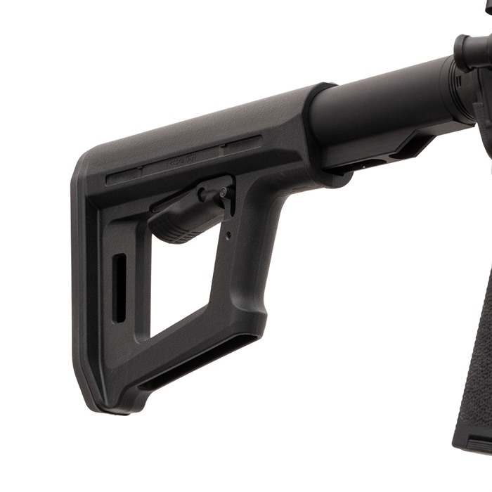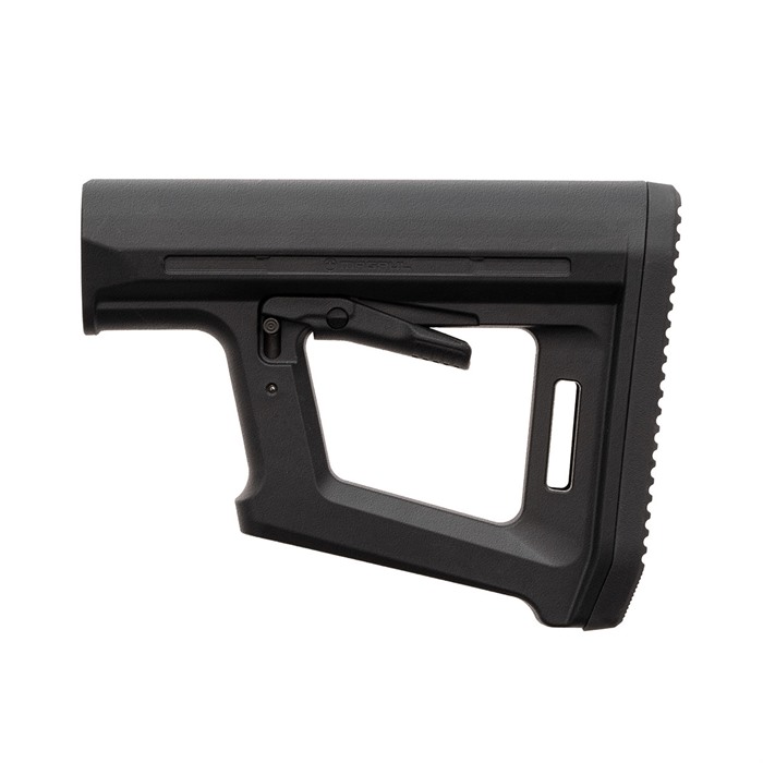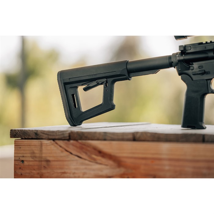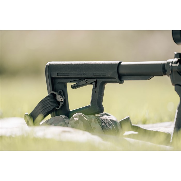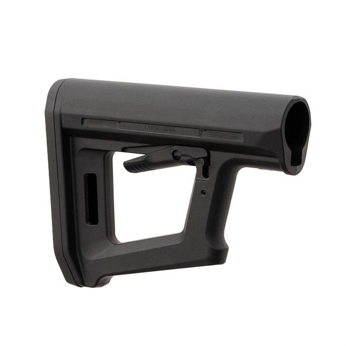 The MOE PR is a full-size carbine stock that blends the simplicity of the legacy MOE Carbine stock with design lines reminiscent to the PRS® Lite. These similarities naturally incorporate some of the features found on the PRS Lite, including a rest on the front edge of the stock for the support hand, allowing shooters to apply rearward pressure on the MOE PR to drive the stock securely into the shoulder for precise shot placement. The slim nature of the stock’s geometry also reduces weight, and the bottom of the stock’s frame also serves as a bag rider. With the M-LOK slot molded into the rear of the stock, shooters can attach a sling using the slot as a footman’s loop or by adding an M-LOK® QD Sling Mount to one or both sides of the M-LOK slot. The MOE PR stock can use all CTR® Cheek Risers to provide a personalized, consistent cheek weld, but they Primarily used for non-AR style firearms. Made in the USA Minimalist, lightweight design Support-hand rest on front strap to minimize movement Bottom support acts as a bag rider for shooting rests CTR Cheek Riser compatible M-LOK slot for QD Sling Mount/footman’s loop COMPATIBILITY For use with Mil-Spec carbine receiver extensions. Can be used with all CTR Cheek Risers and won’t interfere with single-point slings attached to an ASAP or ASAP QD receiver end plate.