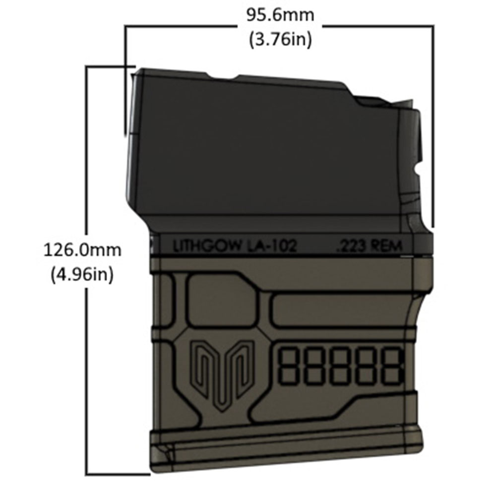 - Caricatore da 10 colpi Lithgow LA 102 con 223 Remington, 308 Winchester (incl. .243win, 6.5 Creedmoor) - con metallo inferiore Mamba.