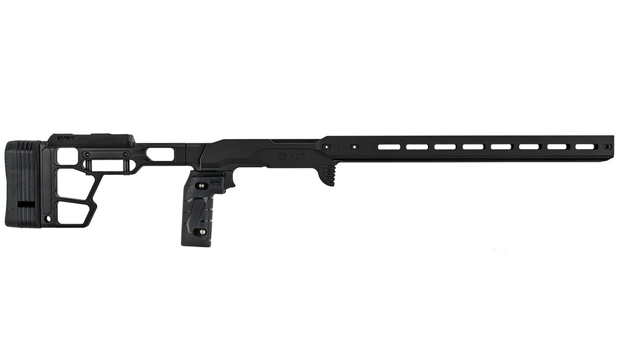 990482727109 The ACC Premier GEN2 is the next evolution of the industry-defining ACC Premier, integrating advancements inspired by the ACC Elite. With a taller integrated barricade stop, a thicker and more rigid forend, and precision-drilled holes for NV and Control Bridge compatibility, this chassis raises the bar for competitive shooting. Designed with modern rimfire competitions in mind, the compact 15” forend accommodates a wide range of barrel sizes while eliminating flex and torsion for rock-solid stability on barricades and PRS props. The wide, flat profile and full-length ARCA rail provide unmatched versatility, allowing seamless mounting of bipods and tripods for superior balance and control. Balancing your rifle is critical for rapid target acquisition and accurate follow-up shots. The ACC Premier GEN2 is fully compatible with MDT’s weight system, giving you the flexibility to fine-tune your setup. Combined with highly adjustable ergonomics—cheek weld, hand position, and length of pull—you’ll achieve a custom fit that enhances both comfort and precision. Installation is fast and straightforward: simply drop your action into place and secure it with two screws—no complex gunsmithing required. At its core lies the precision-engineered V-Block bedding system, ensuring consistent contact between the action and chassis. This eliminates unwanted movement under recoil, maximizing accuracy and stability shot after shot. With a wide range of optional accessories available, the MDT ACC Premier GEN2 Chassis System offers the precision, rigidity, and customization serious competitors demand—giving you the edge to dominate every stage.