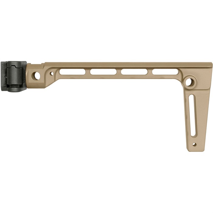 - Pour plier la crosse, appuie sur le mécanisme de verrouillage et plie la crosse vers le côté.