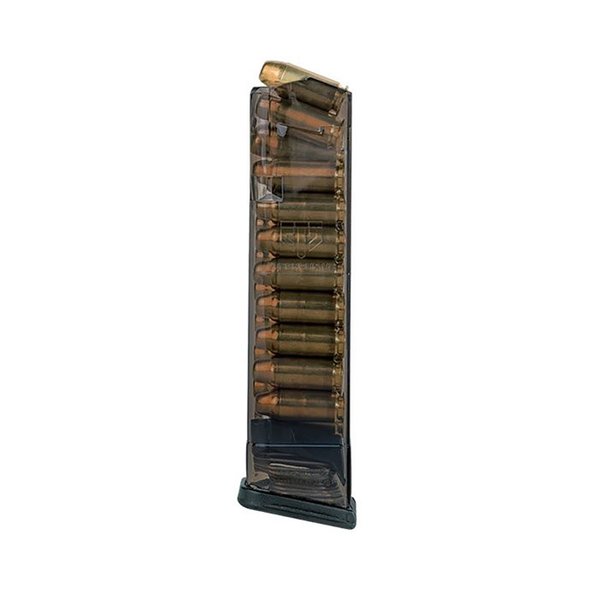 ETS translucent polymer magazines feature the reliability of OE mags with lightweight performance polymer construction and are competition legal. The translucent magazine bodies allow you to know immediately whether a magazine is loaded or not. The ETS competition legal translucent polymer magazines fit .40 S&W Glock models 22, 23, 24, 27, and 35. They are available in 19 (140mm), 24 (170mm), and 30 (210mm) round configurations, and are compatible with Gen 1 - Gen 4 Glocks. Easy disassembly with specially designed base plate Compatible with Glock, as well as aftermarket floorplates Creep resistant - feed lips and body won't spread when stored long term, even when loaded Let ETS competition legal translucent polymer magazines carry you to victory.