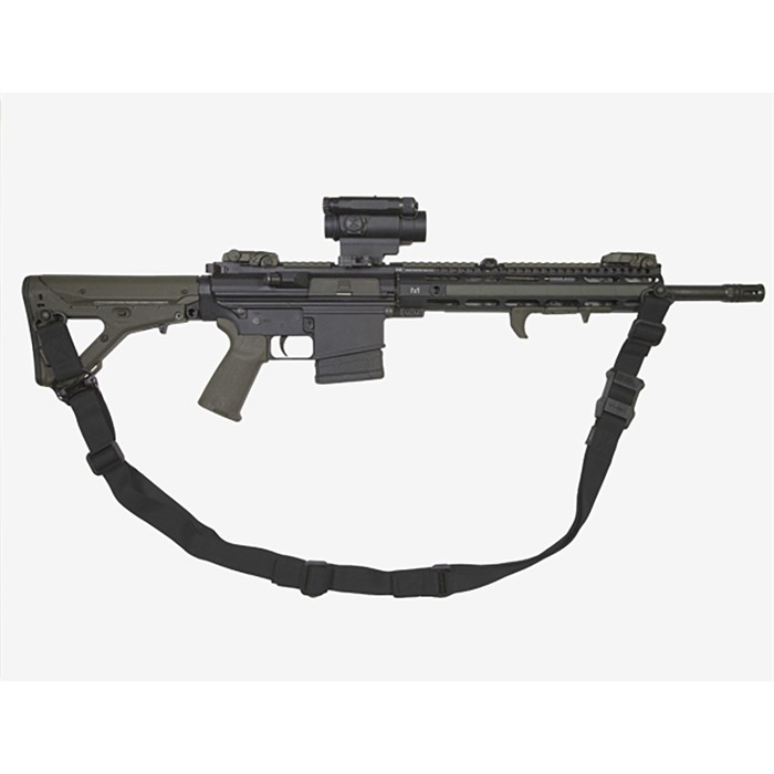 Combine with the MS1® Sling and QD Sling Swivel to provide two to one-point convertibility. Constructed of QPQ salt bath nitride and manganese phosphate finished steel with custom, snag-free, high durability 1-1/4" webbing. Made in the USA. NSN: MAG519-COY 1005-01-665-9430 DURABLE CONSTRUCTION Custom 1.25 inch wide nylon webbing material is strong and wear resistant Colored webbing has Near Infrared (NIR) treatment to reduce IR signature QPQ salt bath nitride and phosphate finished steel for corrosion resistance SIMPLE, STRONG, SECURE Combine with the MS1 Sling and additional QD Sling Swivel to provide fast transition between one-point and two-point configuration Heavy-duty push-button QD Sling Swivel for one-point attachment QD Sling Swivels and ambidextrous QD shackle allows easy convertability and provides weapon quick-release capabilities in an emergency Attachment: QD Cups & Sockets SLING ASSEMBLY MOUNTING REAR - Works with receivers, end plates, and buttstocks that have a push-button QD socket for one-point attachment. FRONT - Using optional QD Sling Swivel, compatible with the Magpul RSA®-QD and Forward Sling Mounts, as well as most other push-button QD sockets for use in two-point mode.