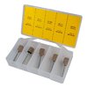 Das Starter Kit enthält jeweils ein Rad jeder Körnung, verpackt in einer unterteilten Kit-Box. Die Nachfüllpakete enthalten drei Räder einer Körnung. Der 1/8" Schaft passt zu handgeführten, hochdrehenden Rotationswerkzeugen.