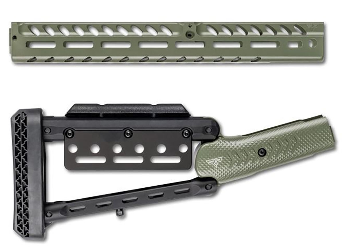 850078134431 Ranger Point M-LOK Handguard and Adjustable Butt Stock for Marlin Does not fit: Marlin rifles with pistol grip or barrel band forearm (Check “Will this fit my rifle?”). Specifications: Weight: Handguard: 5.8 oz (164 g) | Stock: 22 oz (624 g) Material: Precision-machined from 6061 billet aluminum Handguard Dimensions: 13.25" x 1.5" x 1.6" Included in Package: 1x M-LOK Handguard with barrel band tenon, 2 screws, 4 mounting set screws 1x Adjustable Butt Stock with cheek riser, M-LOK accessory panel Key Features: 24 M-LOK slots and 4 Flush Cup holes for sling swivels Superior rigidity, ergonomic comfort, and DIY-friendly installation Adjustable cheek riser and AR-style butt plate with DEAD BLOW recoil padNachbestellt, Lieferzeit ca. 4-5 Monate aus dem Lager Europa.