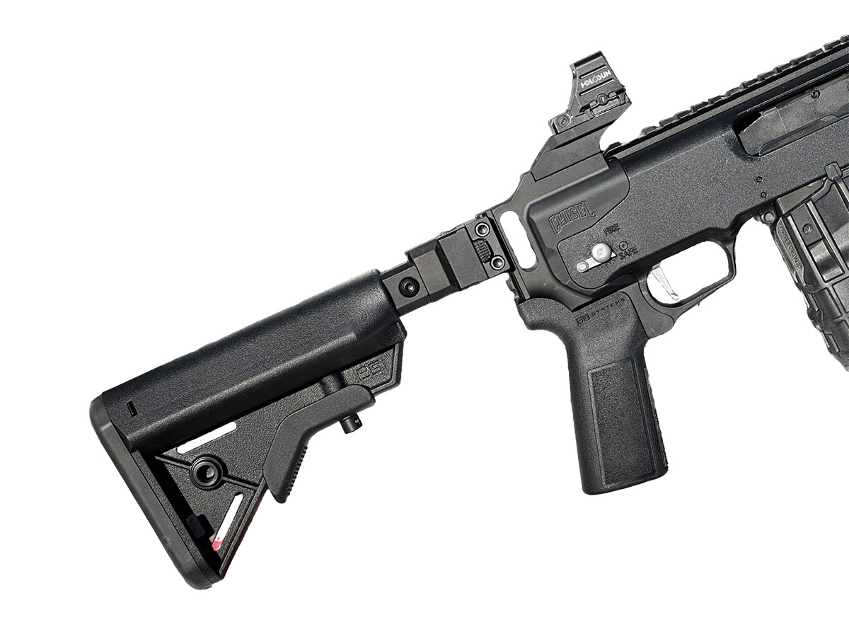 Machined from solid 6061 billet aluminum, the 590R Folder offers exceptional strength while maintaining a balanced weight profile. The side-folding mechanism allows the stock to fold neatly, significantly reducing overall length for easier transport, storage, and maneuverability in confined spaces.