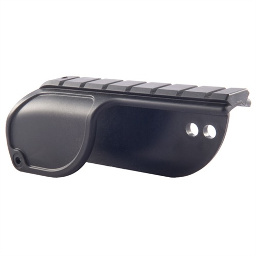 Easy-to- install mount lets you attach an optic or laser sight to your shotgun without drilling, tapping, or making permanent alterations to the gun. Remove the two trigger group pins (Rem.), or the ejector screw and trigger pin (Moss.), slide on the mount, line up the holes, and secure it with the included replacement pins. Low-profile, form-fitting design looks like part of the receiver and positions the sight close to the bore axis. Seven cross-slots in the 5" rail let you install an optic, Weaver top-mount rings, or other accessory, with plenty of flexibility in setting eye relief. Lightweight, yet rugged, reinforced molded polymer stands up to extreme weather conditions ranging from -40°F to 150°F.