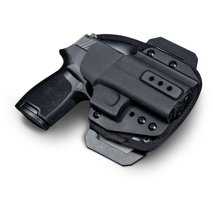 - Setze die Waffe vorsichtig in das Holster ein, sodass sie sicher gehalten wird.