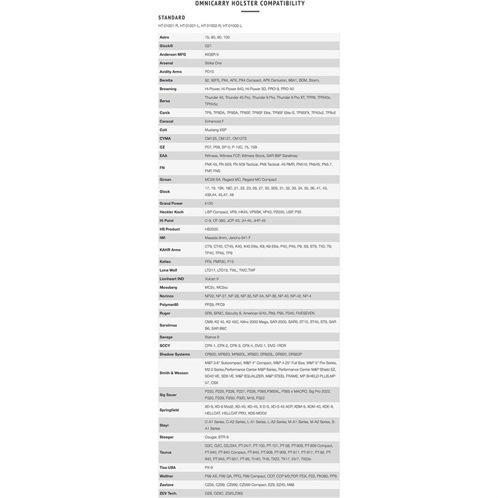 Sicherheitshinweise für das OMNICARRY MULTIFIT OWB Holster