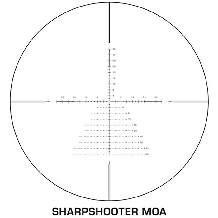 - Disponibile in Sharpshooter MOA con regolazioni di 0.25 MOA per clic, o Sharpshooter MRAD con regolazioni di 0.01 MRAD per clic.