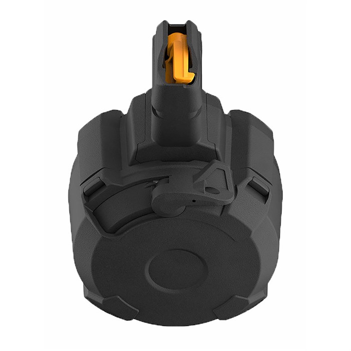 Proprio come i caricatori PMAG D-50 e D-60 per fucili, questo Magpul D-50 GL9 PCC PMAG utilizza una costruzione simile, che lo rende provato e affidabile. Con una capacità di 50 colpi di 9mm, la configurazione a tamburo del caricatore rende l'altezza complessiva gestibile, e l'unità presenta un meccanismo di ratcheting che aiuta nel caricamento.