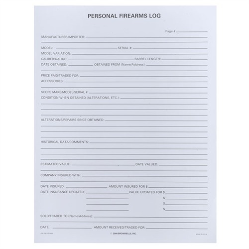 BROWNELLS PERSONAL FIREARMS LOG, 25 PACK