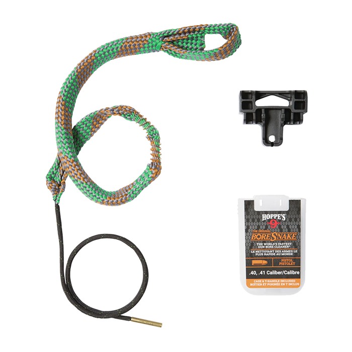 The Pistol Bore Snake scrubs and cleans the barrel of your handgun in a single step. The built in, bench-quality phosphor bronze brush and braided floss scrub, clean and oil the bore in just minutes. Apply a few drops of bore cleaner to the front of the cord and oil to the end. Drop cord into the bore and pull through five times. Calibers: .22, .30, .32, 9mm, .357, .380, .38, .40, .41, .44, .45 The Pistol Bore Snake is washable and reusable and the lightweight design folds neatly away in new "den" carrying case for easy storage.