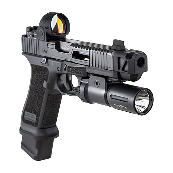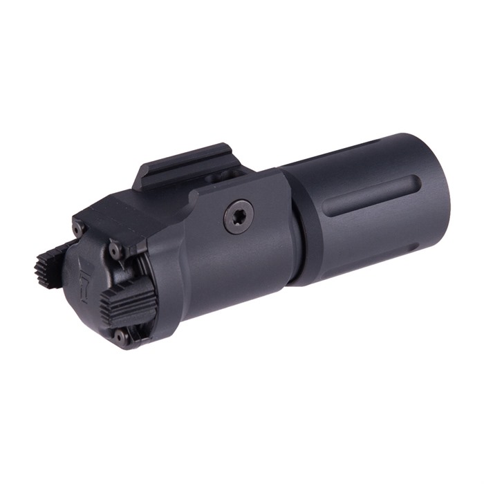 The PL350 is the much-anticipated handgun light that combines modularity and compatibility from Modlite. Utilizing two rail keys (included) the PL350 has the ability to fit both universal and 1913 handgun rails. And with a “out the front” battery compartment you don’t need to remove the light to change out the battery. Speaking of batteries, the PL350 is powered by a single, rechargeable 18350 (one battery included with light) that is both well known and well regarded by currently users of Modlite. The PL350 is available with 4 different options for light heads. The PLHv2, the OKW, the IR 940, and the IR-850. PLHv2 If you're looking for the best overall output and throw this is the package you want. Approximately 1350 out the front lumens and candela is approximately 54,000. It is an excellent overall light head good for indoor or outdoor use. OWK This light head is best suited for situations where extreme throw is needed. Approximately 680 out the front lumens and candela is approximately 69,000. This light is an excellent choice for anyone needing maximum throw. IR 940 This is a dedicated IR illumination head that is designed to output IR light in the 940nm IR spectrum. The reflector is designed to deliver a good amount of spill and a well defined hot spot at distances up to 75 yards depending on atmospheric conditions. Approximately 500mW IR output. IR 850 This is a dedicated IR illumination head that is designed to output IR light in the 850nm IR spectrum. The reflector is designed to deliver a good amount of spill and a well defined hot spot at distances up to 300 yards depending on atmospheric conditions. Approximately 1100mW IR output. Runtimes vary between models. Each PL350 includes a single 18350 rechargeable battery, a charger, and PHLster ARC Enhanced Switches which allow for end-user modularity