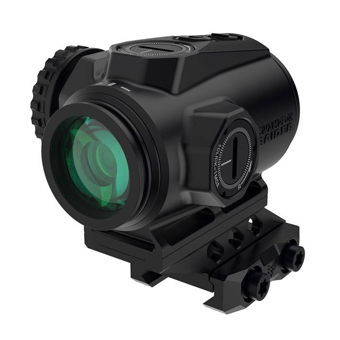 Dieses Micro Prism hebt sich durch sein Gehäuse aus Druckguss-Zinklegierung hervor, das wirklich robust ist und auch bei Stössen seine Funktionalität behält. Das Raider ist mit roter und grüner Beleuchtung erhältlich, wobei das geätzte Fadenkreuz schwarz erscheint, wenn die Beleuchtung ausgeschaltet ist. Die Shake N’ Wake Bewegungssensor-Technologie schaltet das Gerät automatisch ein und aus, was die Batterielebensdauer schont und perfekt für die Heimverteidigung ist. Wenn du Schwierigkeiten mit einem Standard-Rotpunkt hast, ist das Raider genau das Richtige für dich!