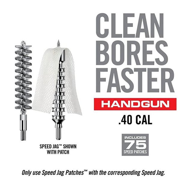 Der verlängerte Speed Jag verfügt über mehrere Kompressionsringe entlang der gesamten Länge. Bore-Max Speed Jag und Patches sind präzise dimensioniert, um die optimale Kompression und den Kontakt zu gewährleisten, um die Innenseite des Laufs zu reinigen.