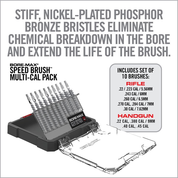 Hol dir die BORE-MAX SPEED BRUSHES MULTI-CAL PACK und erlebe eine gründliche Reinigung deiner Waffen wie nie zuvor!