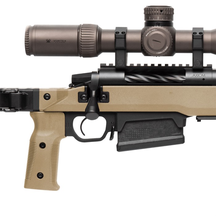 Das Magpul Pro 700L Gewehrchassis ist ein kompromissloses, voll ausgestattetes Präzisionsgewehrchassis für Langzünger Remington 700 und Remington 700-Fussabdruckgewehre. Das Pro 700L kombiniert innovative Technik, präzise Bearbeitung, Mil-Spec-Qualitätsoberflächen und eine umfangreiche Liste funktionaler Designelemente mit vollständiger Einstellbarkeit, um anspruchsvollen Endbenutzern die umfassendste verfügbare Präzisionsgewehrplattform für echte Out-of-the-Box-Leistung zu bieten. Basierend auf einem vollständigen Billet-Aluminium-Skelett und mit Magpul-Polymer für Umweltschutz, Geräuschminderung und Ergonomie verkleidet, ist das Pro 700L auch vollständig beidhändig nutzbar. Es kann sowohl für rechts- als auch für linkshändige Aktionen mit dem einfachen Austausch einer Bolzen-Ausschnittplatte angepasst werden, und mit einem umkehrbaren Wangenauflage und einem umkehrbaren Scharnier bei der klappbaren Version sind „Linkshänder“ nicht „aussen vor“. MAG1002 PRO 700L - KLAPP-SCHAFT WIRD MIT DEM PRO FHA - KLAPP-SCHARNIERADAPTER (MAG999) GELIEFERT. MAG1003 PRO 700L - FESTES SCHAFT WIRD MIT DEM PRO FSA - FESTES SCHAFTADAPTER (MAG998) GELIEFERT. Typ III hart eloxiertes bearbeitetes 6061-T6 Billet-Aluminium V-Bedding-Block, Gehäuse, Einstellknöpfe und Vorderschaft mit hochfesten, spritzgegossenen Polymer-Gehäusedeckeln, die optimal für Komfort und Ästhetik platziert sind. Der beidhändige Bedding-Block kann geändert werden, indem die QD-Sling-Schwenkplatte und die Bolzen-Retainer-Einsätze für Links- oder Rechts-Hand-Aktionen mit einem 1/8” Inbusschlüssel ausgetauscht werden. Eine Magpul Pro NVM – Nachtsicht-Montageclip-on-Montageschiene ist verfügbar. Der gesamte LOP-Einstellbereich beträgt 13,25” – 15,125”. Die Höhe des Schaftpolsters kann um 1,33” nach oben und um 0,90” nach unten eingestellt werden und ist links oder rechts für insgesamt 5 Grad einstellbar. Die Wangenhöhe hat einen Bereich von 1" mit einem sekundären Verriegelungsknopf, um Bewegung im Wangenauflage zu eliminieren. Die Wangenauflage bietet eine 3-Positionen Vor-/Rückwärtsanpassung von +0,375", 0" und -0,375", die ebenfalls für die Verwendung auf der linken oder rechten Seite mit nur einem gängigen Inbusschlüssel geändert werden kann. Griff aus spritzgegossenem Polymer mit 5 Grad Vorneigung und vergrössertem Handballen mit 7 Grad Rückneigung für erhöhten Benutzerkomfort, kombiniert mit einem Einstellbereich von 0,75" Vor-/Rückwärts mit einem gängigen Inbusschlüssel. Eine zusätzliche Griffoption ist enthalten, die eine aggressivere Neigung und einen vergrösserten Handballen für den Schützen bietet, der eine weniger vertikale Griffoberfläche bevorzugt (8 Grad Vorneigung / 20 Grad Rückneigung). Robuste gegossene Stahl-QD-Sling-Schwenkmontagen mit Melonite-Oberfläche passen bis zu 1,5” Druckknopf-Schwenken. M-LOK-Slots für Zubehörmontage am Vorderschaft (links-6/rechts-6/unten-7) und am Schaft (unten-2). Integrierter AICS-Muster-Magazinschacht aus verstärktem Polymer, optimiert für PMAG® 5 AC™ L, Standard und PMAG® 5 AC™ L, Magnum - AICS Langzünger-Magazine sowie die meisten anderen AICS-Muster-Langzünger-Magazine. Grosszügiger Abzugsbügel ermöglicht die Verwendung mit Handschuhen und akzeptiert die meisten Fabrik- und Aftermarket-gekrümmten oder flachen Abzüge. Niedrigprofilierter, schnittfester beidhändiger Magazinfreigabeknopf aus Melonite-behandeltem Stahl für Verschleiss- und Korrosionsbeständigkeit. Hergestellt in den USA.