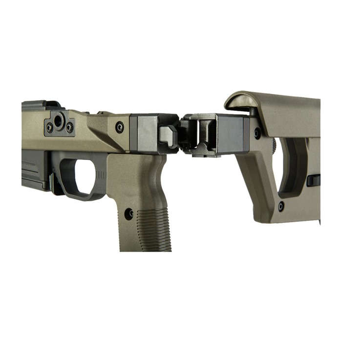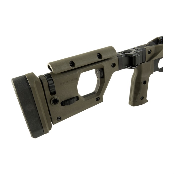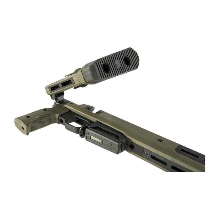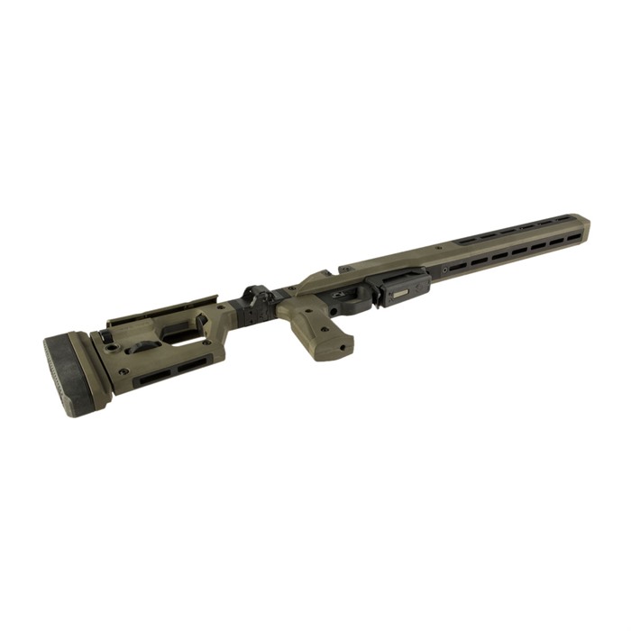 Das Pro 700 Gewehrchassis von Magpul kombiniert innovative Technik und präzise Bearbeitung, um ein voll ausgestattetes Präzisionsgewehrchassis für Remington 700 Aktionen zu schaffen. Basierend auf einem kompletten Billet aus 6061-T6 Aluminium ist das Magpul Pro 700 Gewehrchassis mit Magpul Polymer verkleidet, um Komfort, Geräuschdämpfung und Ergonomie zu gewährleisten. Mit dem Austausch einer Bolzen-Ausschnittplatte, einem umkehrbaren Wangenauflage und einem umkehrbaren Scharnier ist das Chassis vollständig beidhändig, sodass auch Linkshänder in den Genuss kommen! Das Pro 700 Gewehrchassis verfügt über einen spritzgegossenen Polymergriff mit 5-Grad vorderer Kante und vergrössertem Handballen mit 7-Grad hinterer Kante für verbesserten Benutzerkomfort, kombiniert mit einem Verstellbereich von 0,75” vor/zurück, der mit einem gängigen Sechskantschlüssel eingestellt werden kann. Benutzer können die Wangenhöhe mit einem sekundären Verriegelungsknopf auf 1” einstellen, um Bewegungen der Wangenauflage zu vermeiden. Ein integriertes AICS-Muster-Magazin aus verstärktem Polymer ist enthalten und optimiert für PMAG® 5 & PMAG® 10 7.62 AC™ Magazine sowie die meisten anderen AICS-Muster-Kurzlaufmagazine. Umkehrbares, langlebiges Druckknopf-Scharnier zum Falten des Schaftholms. Gesamter LOP-Einstellbereich: 13,25”-15,125”. Höhenverstellung des Schaftpolsters: 0,90”-1,33”, 5 Grad nach links oder rechts verstellbar. Wangenauflage: 3-Positionen Vor/Zurück-Einstellung von +0,375”, 0” und -0,375”; links- oder rechtsseitig verstellbar. Robuste, gegossene Stahl-Drehbewegungsbegrenzte QD-Schwenkhalterungen mit Melonite®-Oberfläche für bis zu 1,5” Druckknopf-Schwenk. M-LOK-Schlitze für Zubehörmontage verfügbar. Der Magazinfreigabeknopf ist aus melonite-behandeltem Stahl, der flach und beidhändig ist. Eine grosse Abzugsbrücke am Pro 700 akzeptiert die meisten serienmässigen und nachgerüsteten gebogenen oder flachen Abzüge und kann mit Handschuhen verwendet werden. Ein melonite-behandelter Stahl-Magazinfreigabeknopf ist flach und beidhändig. Das Magpul Remington 700 Pro Chassis passt zu einem MTU-Laufprofil und ist in Schwarz, Flat Dark Earth und OD Grün erhältlich. Das Remington 700 Pro Chassis wäre ein grossartiges Upgrade für eine bestehende Waffe oder für deinen nächsten Build!