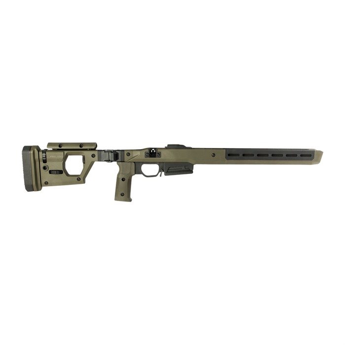 Magpul’s Pro 700 Rifle Chassis combines innovative engineering and precision machining to create a full featured precision rifle chassis for Remington 700 actions. Based on a full billet 6061-T6 aluminum skeleton, the Magpul Pro 700 Rifle Chassis is clad in Magpul polymer for comfort, noise mitigation, and ergonomics. With the swap of a bolt-cutout plate, a reversible cheek riser, and reversible hinge, the chassis is fully ambidextrous, ensuring that left handed shooters are included in the fun! The Pro 700 Rifle Chassis features an injection molded polymer grip with 5-degree forward edge sweep and enlarged palm swell with 7-degree aft edge sweep for enhanced user comfort combined with a .75” fore/aft adjustment range using a common hex wrench. Users can adjust the comb height to 1” with a secondary locking knob, eliminating movement to the cheek riser. An Integrated AICS pattern magazine made of reinforced polymer is included and optimized for PMAG® 5 & PMAG® 10 7.62 AC™ magazines as well as most other AICS pattern short action magazines. Reversible, durable push-button hinge to fold the stock Overall LOP adjustment range: 13.25”-15.125” Butt pad height adjustment: .90”–1.33”, adjustable 5 degrees left or right Cheek riser: 3-position fore/aft adjustment of +.375”, 0” and -.375”; left- or right-handed adjustable Durable cast steel rotation limited QD sling swivel mounts with Melonite® finish fits up to 1.5” push button swivels M-LOK slots available for accessory mounting The magazine release is melonite treated steel that is low-profile and ambidextrous A large trigger guard found on the Pro 700 accepts most factory and aftermarket curved or flat triggers, and can be used with gloves. A melonite treated steel magazine release is low-profile and ambidextrous. The Magpul Remington 700 Pro Chassis fits up to an MTU barrel contour and is available in black, flat dark earth, and od green. The Remington 700 Pro Chassis would be a great upgrade to an existing gun, or for your next build!