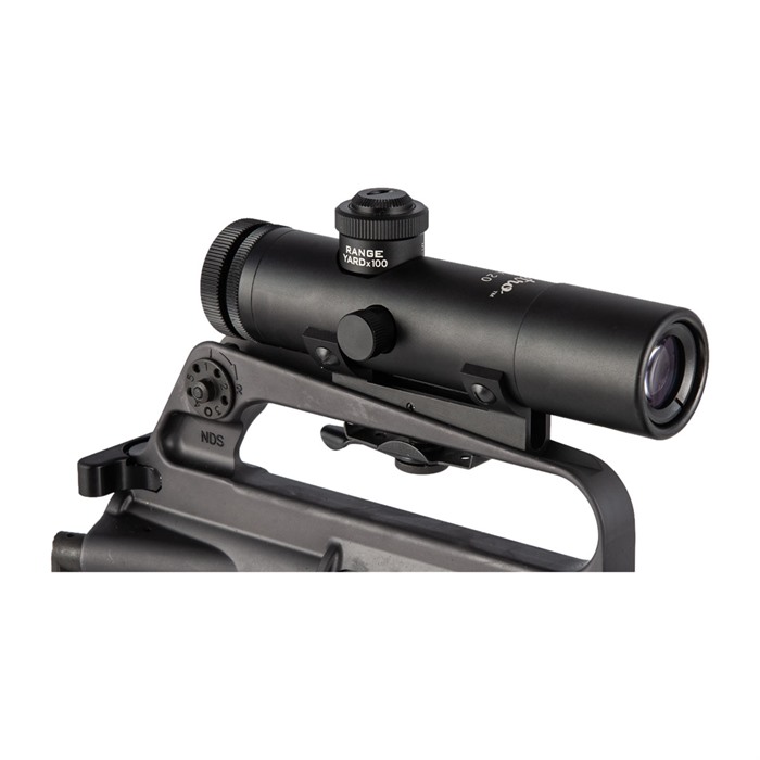 L'optique Retro 4x Carry Handle arbore un réticule duplex fin simple et intuitif, comme l'original, ainsi qu'un turret d'élévation avec des clics BDC (ballistic drop compensated) qui correspondent étroitement aux munitions modernes de .223/5.56 de 55gr et 62gr. Comme son nom l'indique, le Retro 4x est livré avec un support de poignée de transport intégré qui se fixe facilement à la plupart des poignées de transport AR-15 - aucun outil requis.