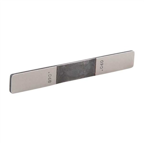 050806019935 Der einfach zu bedienende, doppelseitige Messschieber überprüft schnell und präzise den Kopfspiel bei jedem .38/.357 Revolver, dessen Zylinderkammern NICHT für den Patronenrand vertieft sind. Funktioniert bei Ruger S.A. und D.A. (60-66), S&W's (60-68) und anderen mit denselben GO und NO GO Spezifikationen. Zu viel Kopfspiel kann zu Zündausfällen und/oder geplatzten Hülsen führen; zu wenig verursacht ein Klemmen.