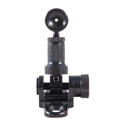 Der RIFLE BULLSEYE REAR SIGHT ersetzt die standardmässigen 3⁄8" dovetail Hintervisiere auf vielen Gewehren und ist kompatibel mit Perlen- oder traditionellen Klingen-Frontvisieren.