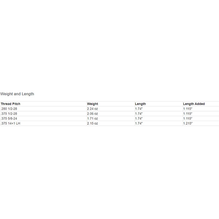 Calibro: 375 Calibro (.375) Filetti: 1/2-28 Finitura: Nero Materiale: Acciaio inox N. prodotto: 430111367