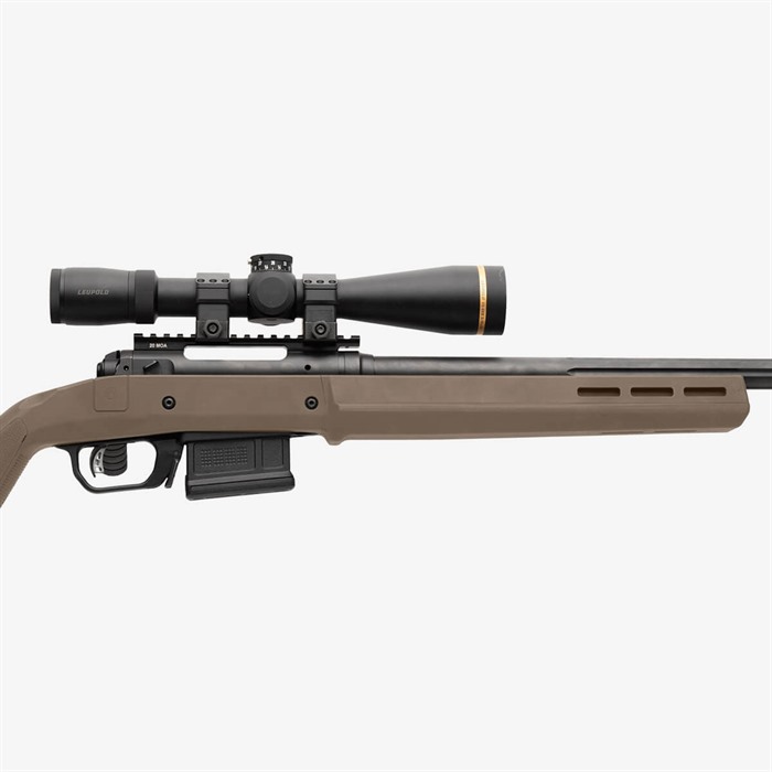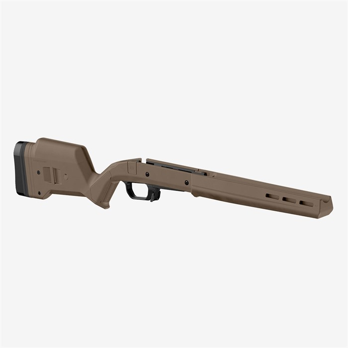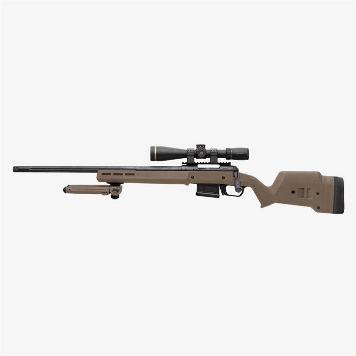 La calciatura Hunter 110 per Savage 110 Short Action è l'ultima aggiunta alla linea di prodotti Magpul Hunter. Presenta ergonomia migliorata, versioni per azioni destre e sinistre, otto slot M-LOK® per opzioni di montaggio e una lunghezza di trazione e altezza del comb completamente regolabili.